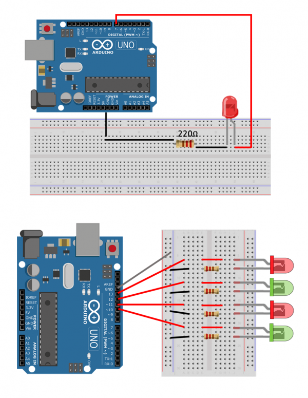 아두이노 LED 동작 작성자 임베디드코리아 작성일23-01-30 15:04 조회1,745회 댓글0건 첨부파일 LED.ino (184byte) 7회 다운로드 DATE : 2025-05-15 16:04:20 이전글 다음글 목록 동영상 : https://youtu.be/ldQG9p2lh38 < LED 1개 깜박이기 > --------------------------------------------- int led1pin=7; void setup() { pinMode(led1pin, OUTPUT); } void loop() { digitalWrite(led1pin, HIGH); delay(500); digitalWrite(led1pin,LOW); delay(500); } ---------------------------------------------------- < LED 4개 동작 > ------------------------------------------------------- void setup() { pinMode(13, OUTPUT); pinMode(12, OUTPUT); pinMode(11, OUTPUT); pinMode(10, OUTPUT); } void loop() { digitalWrite(13, HIGH); delay(1000); digitalWrite(13, LOW); digitalWrite(12, HIGH); delay(1000); digitalWrite(12, LOW); digitalWrite(11, HIGH); delay(1000); digitalWrite(11, LOW); digitalWrite(10, HIGH); delay(1000); digitalWrite(10, LOW); delay(1000); } 이전글 다음글 목록
